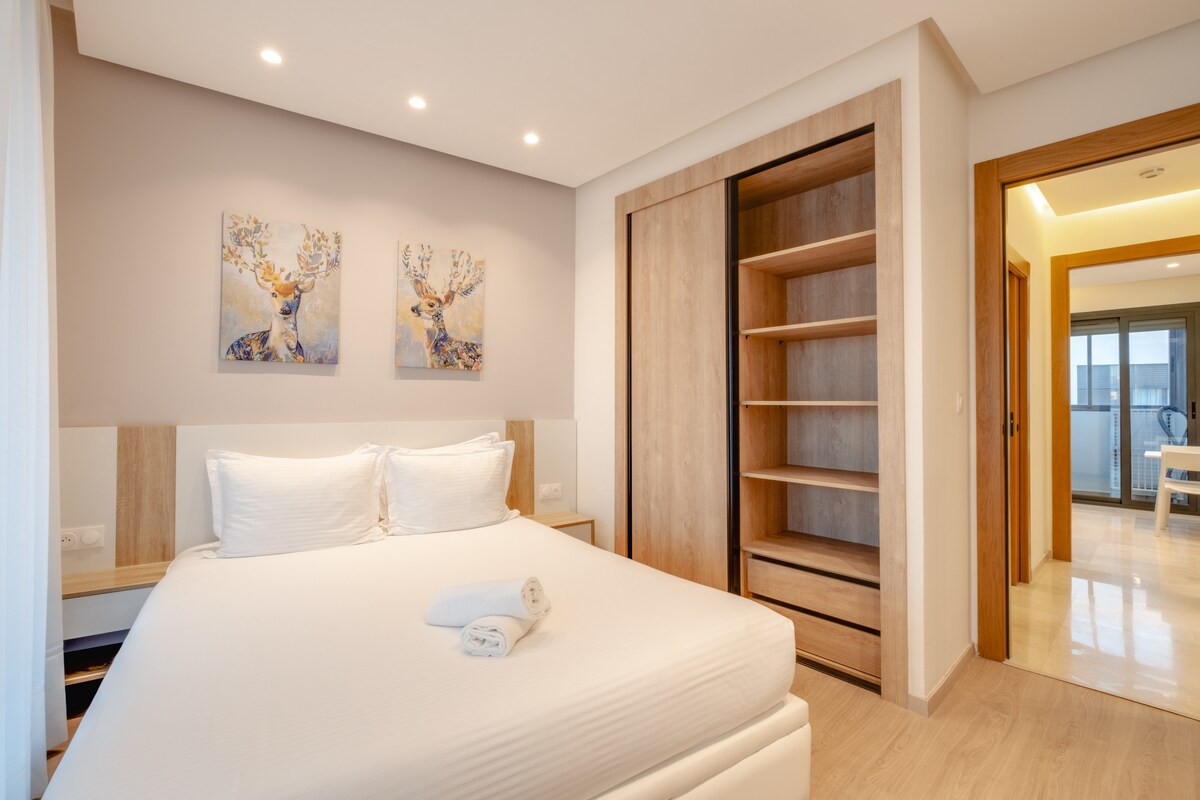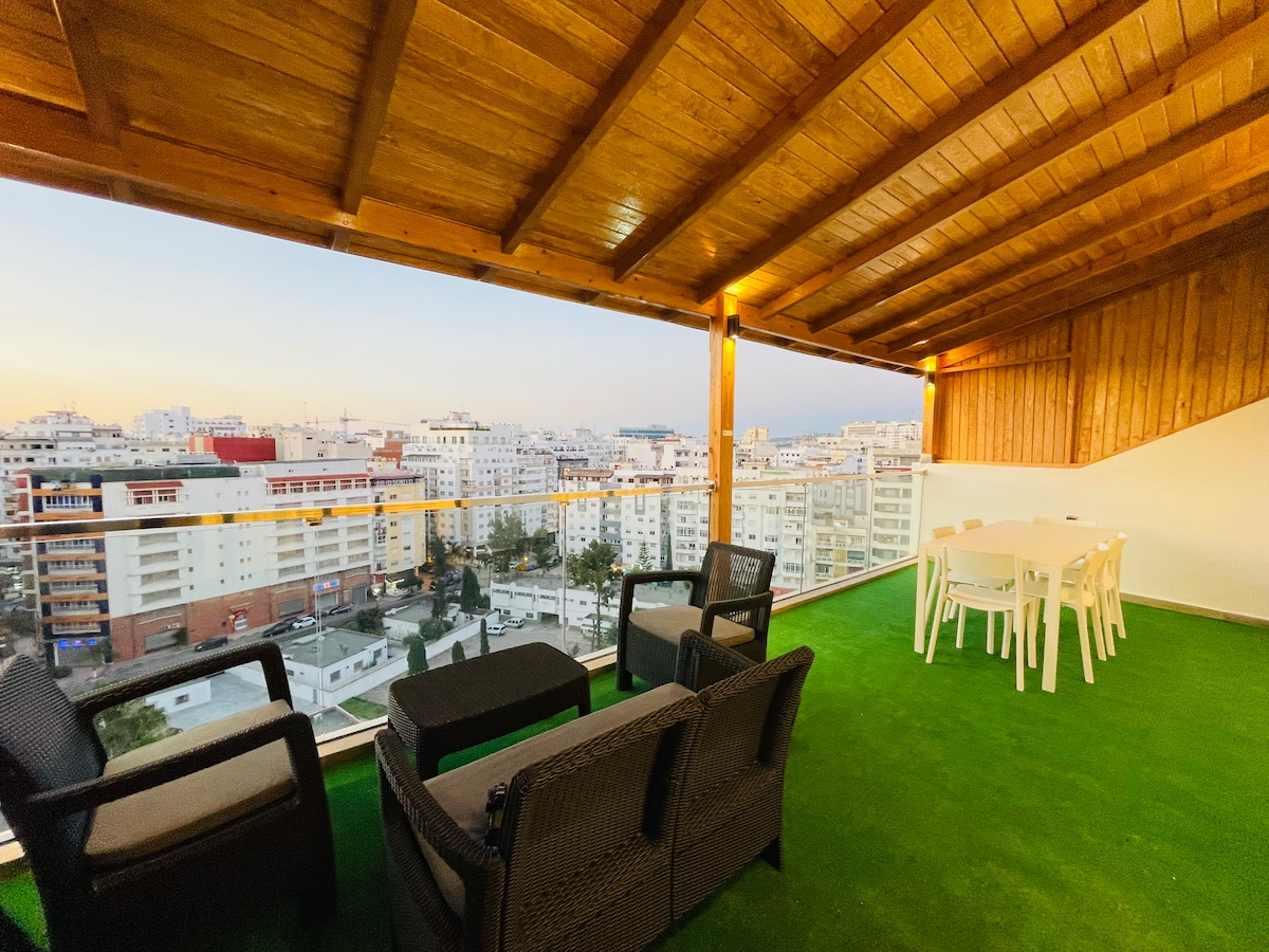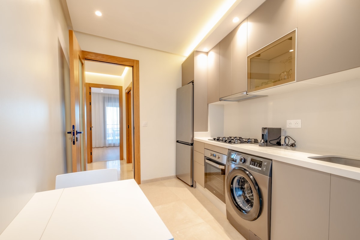 Appartement luxueux situé au cœur de Tanger ! Avec des chambres confortables, une connexion Internet haut débit et une cuisine entièrement équipée, ainsi qu’une terrasse sur le toit offrant des vues imprenables, nous offrons tout ce dont vous avez besoin pour un séjour mémorable. Le salon est lumineux et spacieux, tandis que chaque chambre dispose de lits confortables et de nombreux espaces de rangement. La cuisine est équipée d’une cuisinière, d’un four, d’un réfrigérateur et d’une machine à laver. Notre emplacement central pratique et nos équipements modernes font de notre appartement la base idéale pour séjourner à Tanger.